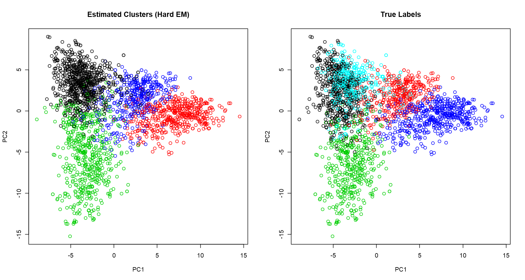 From rapidminer The EM (expectation maximization) technique is similar to the K-Means technique. The basic operation of K-Means clustering algorithms is relatively simple: Given a fixed number of k clusters, assign observations to those clusters so that the means across clusters (for all variables) are as different from each other as possible. The EM algorithm extends this basic approach to clustering by assigning examples to clusters to maximize the differences in means for continuous variables.The EM clustering algorithm computes probabilities of cluster memberships based on one or more probability distributions. The goal of the clustering algorithm then is to maximize the overall probability or likelihood of the data, given the (final) clusters.