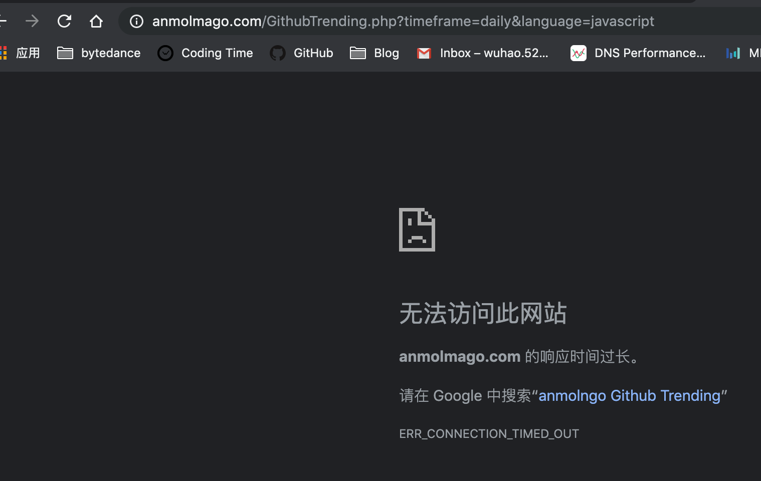 Chrome extension doesn't work, and I find a error that [api](http://anmolmago.com/GithubTrending.php) didn't respond anything