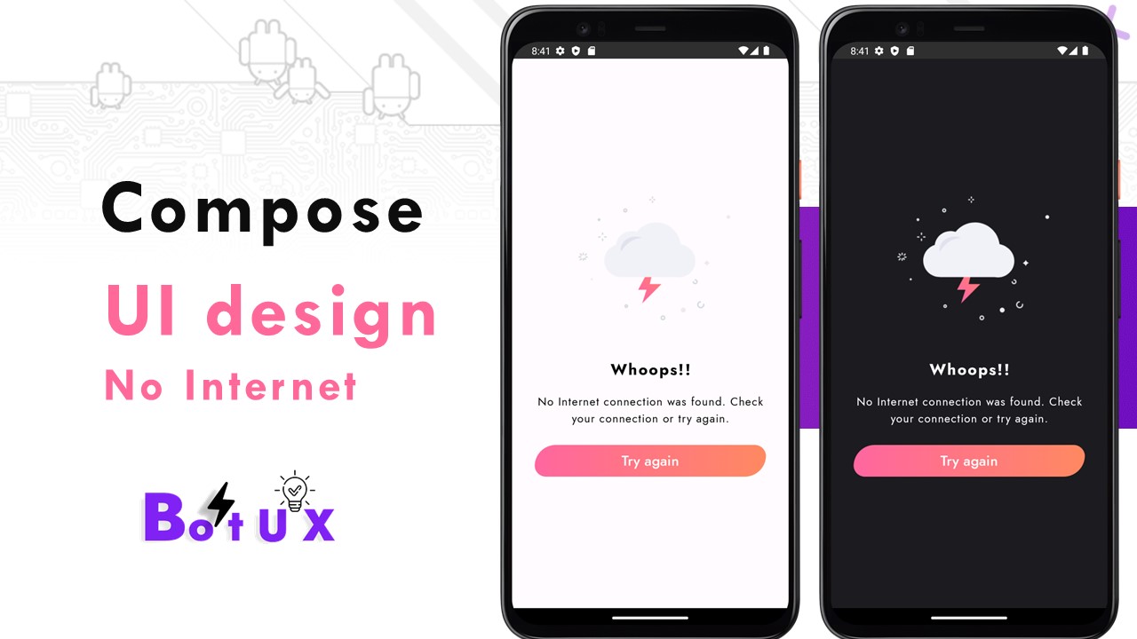 #Compose-No-Internet-Connection-UI-Design No Internet Connection UI Design - Compose UI UX Compose No Internet Connection UI Design for Jetpack Compose UI UX. Read more: https://www.boltuix.com/2022/07/no-internet-connection-ui-design.html