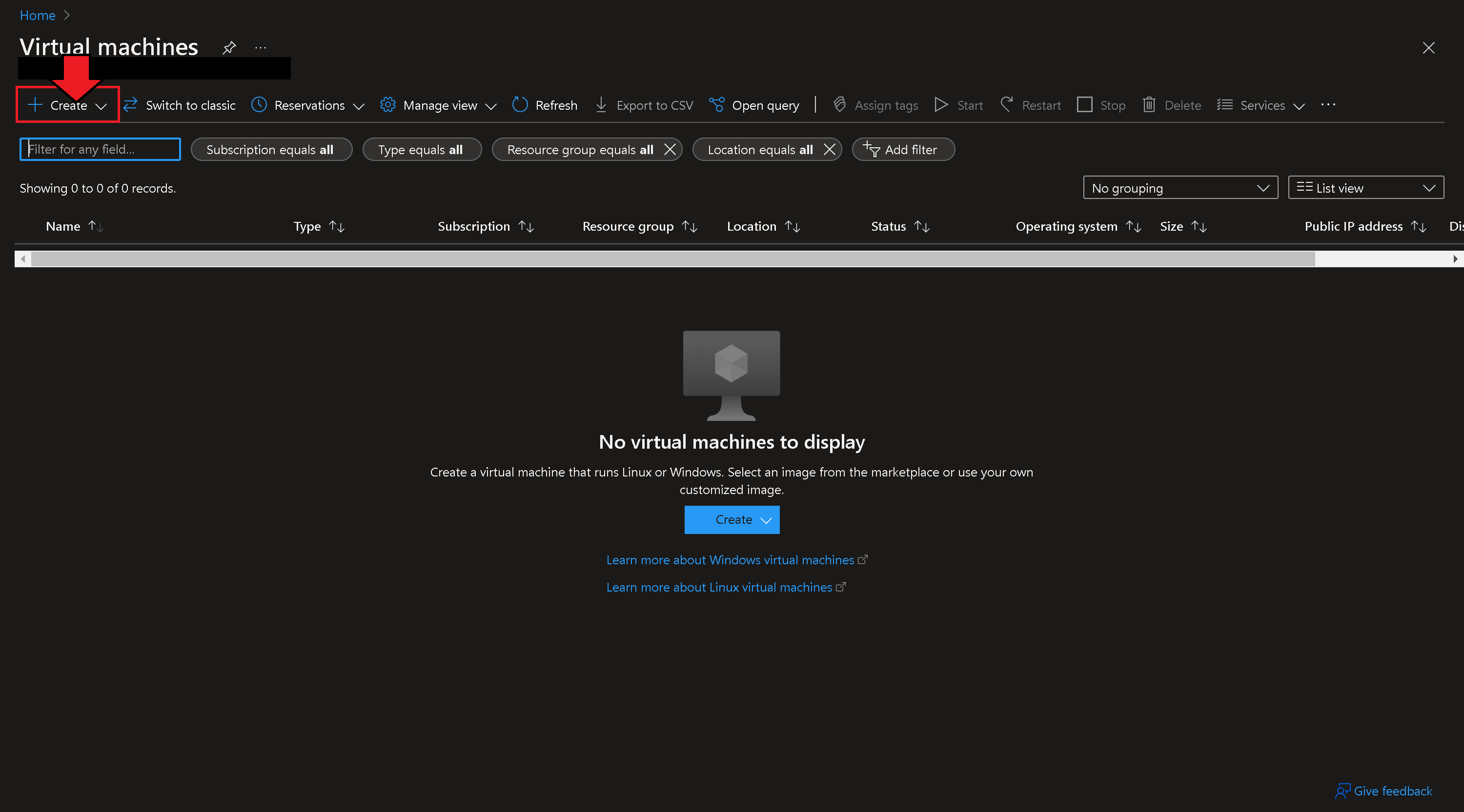 Use the same resource group and region used for the Azure Virtual Machine you created in the previous step when filling out the necessary fields to create your Log Analytics workspace.