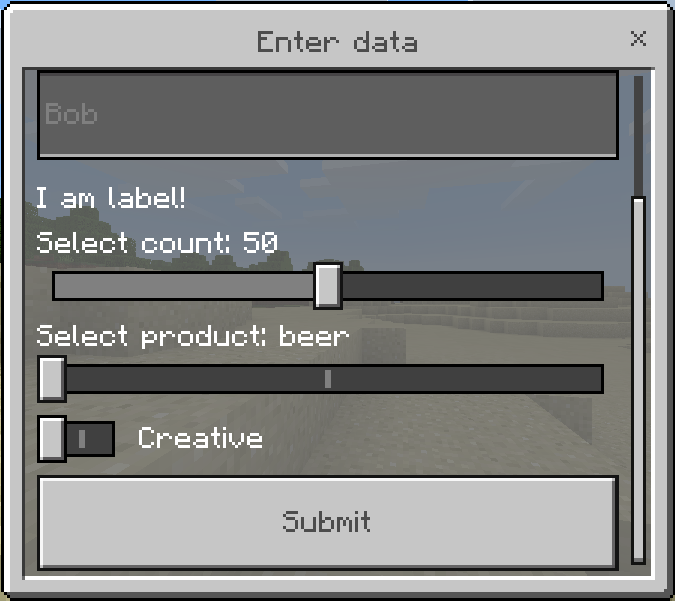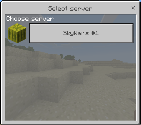 "Select server", "Choose server", [new Button("SkyWars #1", new Image("https://gamepedia.cursecdn.com/minecraft_gamepedia/1/19/Melon.png"))],
