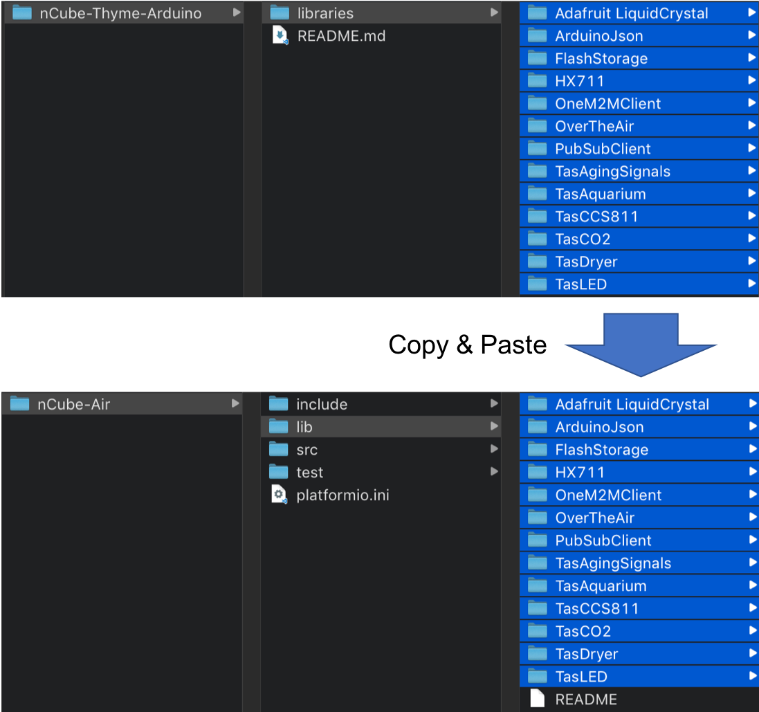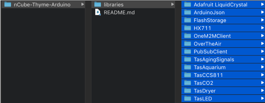 nCube-Thyme-Aruino/libraries 폴더의 라이브러리들을 생성한 프로젝트 폴더의 lib 폴더 내로 복사한다.