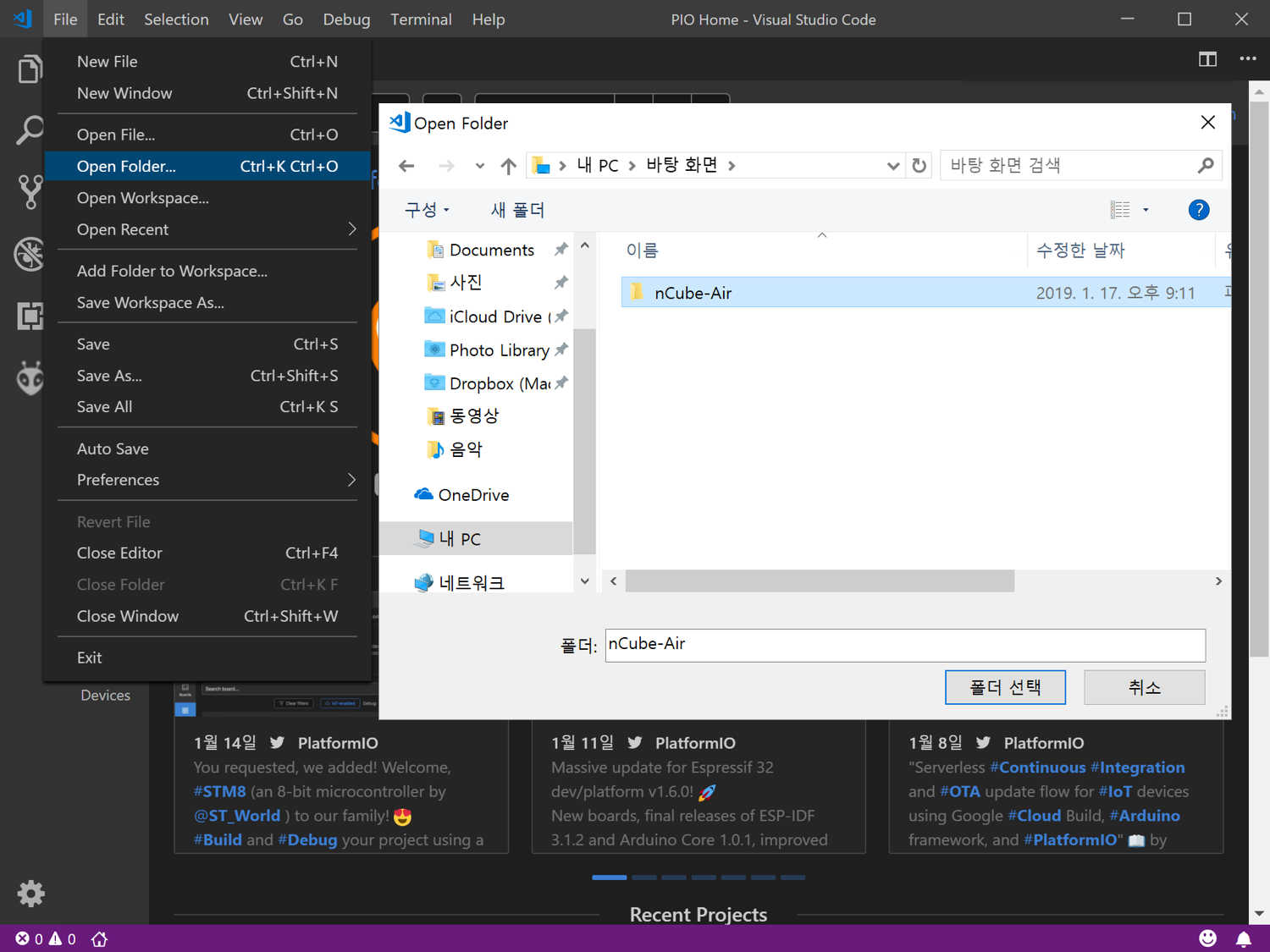 nCube:Thyme for Arduino Development Environment Setup with VS Code (PlatformIO IDE) (Korean)