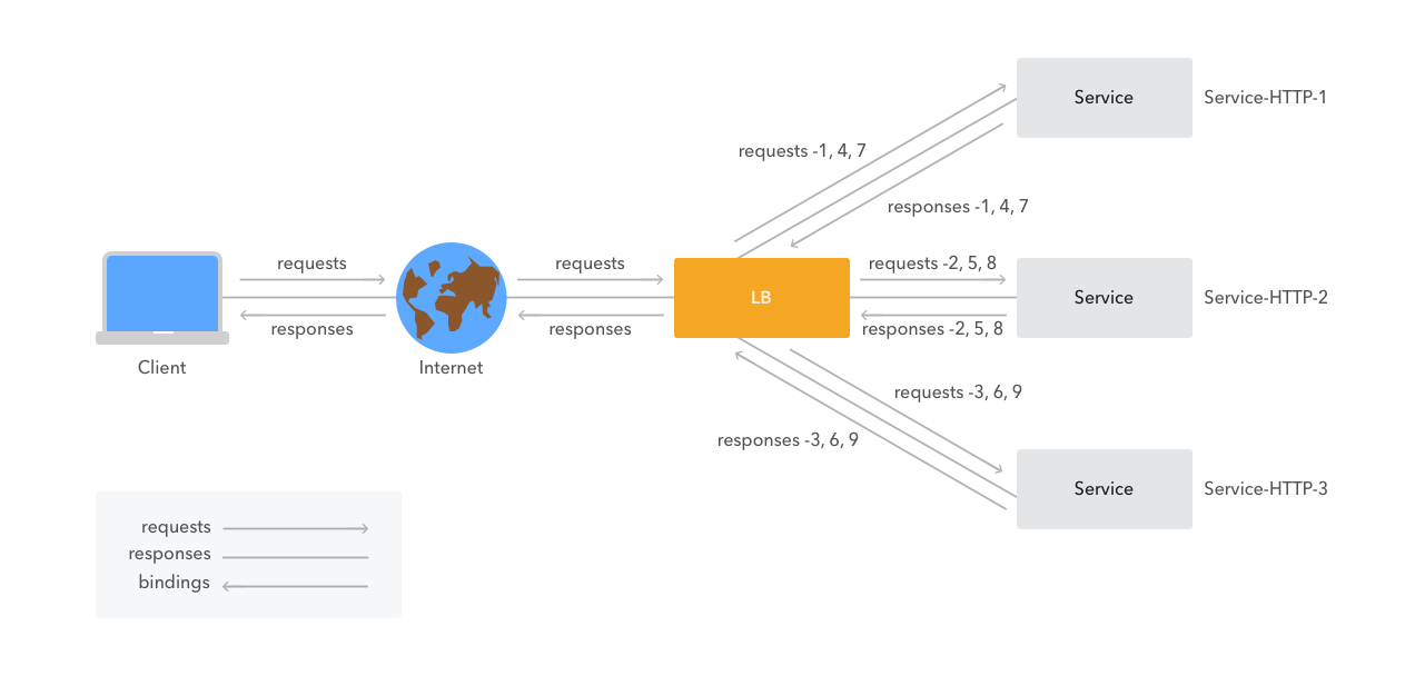 Load balancing can be as simple as a round-robin solution based on a reverse nginx proxy or be based on a full-blown distributed network such as Cloudflare or Amazon CloudFront.