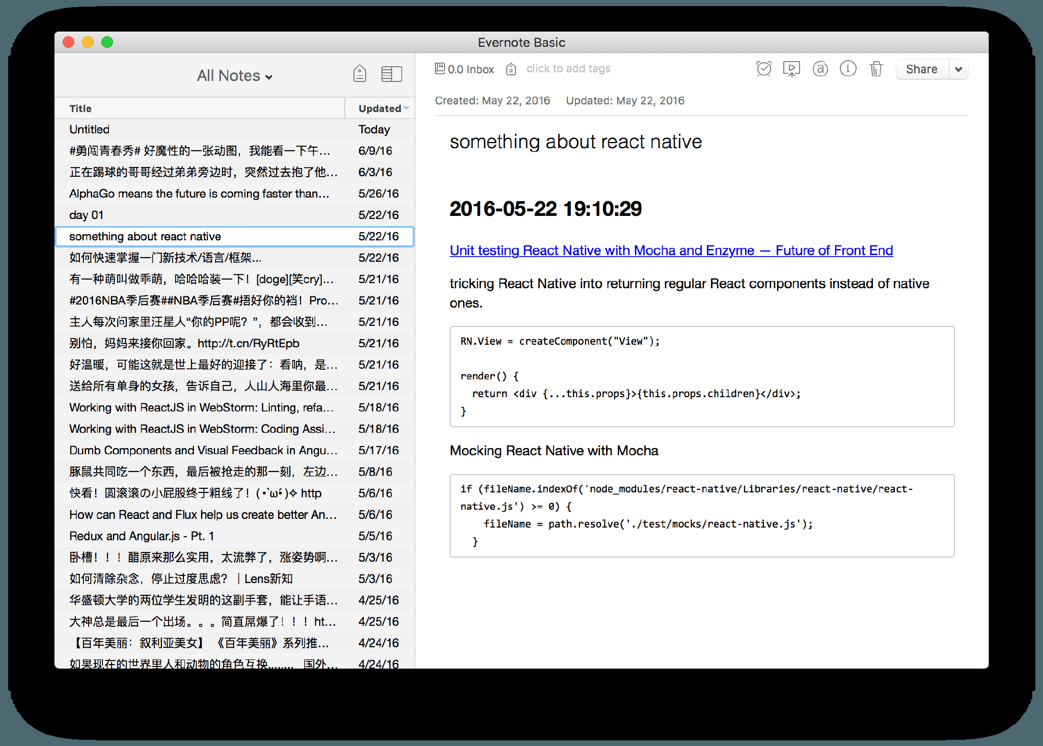 - Evernote 作为富文本编辑的一端,主要功能更多在于预览显示(其中图片无法缩成 md link,故遮挡了视线)