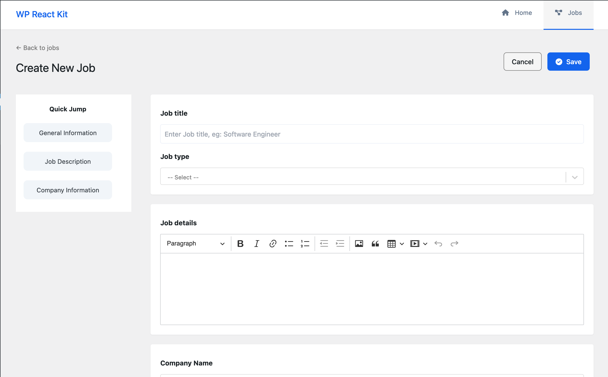 Job Create Page