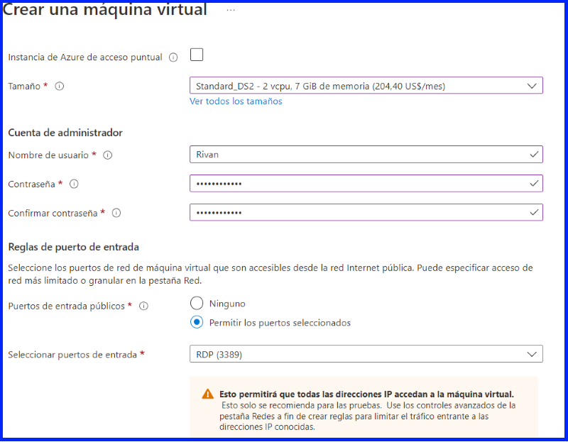- Observamos que ya nos crea una red virtual, una mascara de subred y los puertos permitidos.
