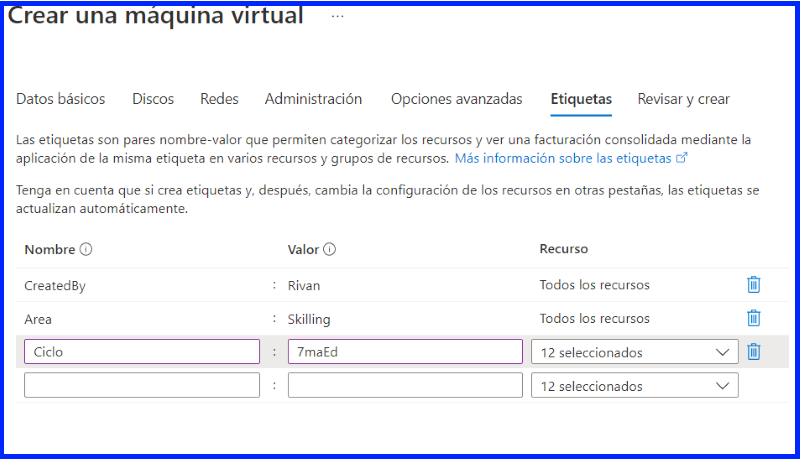 - Agregamos otra etiqueta con Nombre:Area y Valor:Skilling