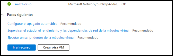 - Para verificar nuestra máquina virtual, seleccionamos 'ir al recurso'.