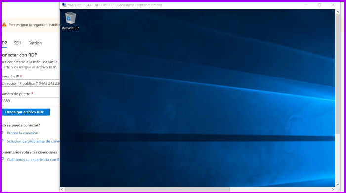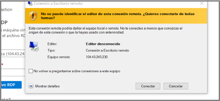 - Descargamos el archivo 'RDP' y lo abrimos.