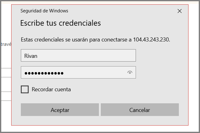 - Nos pedira los datos con los que creamos nuestra máquina virtual y le damos en aceptar.