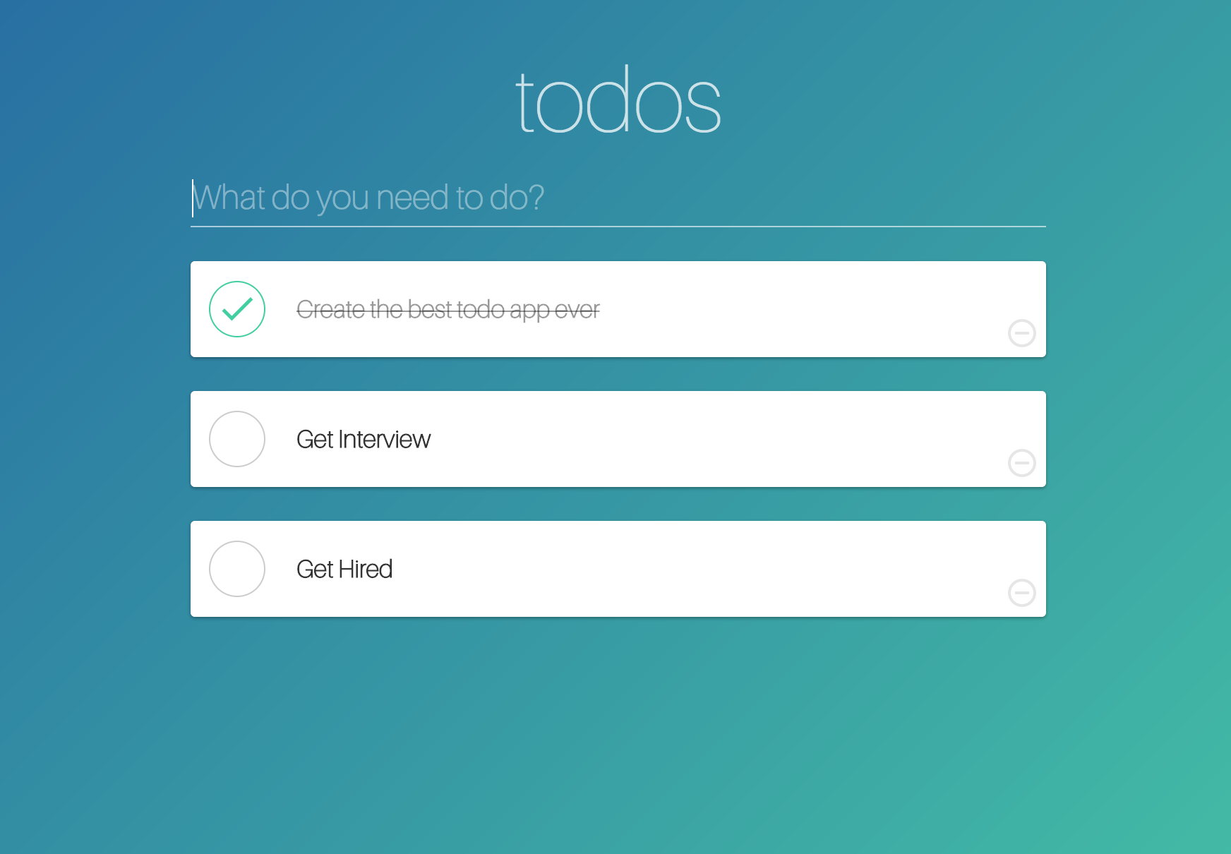 This todo app was an exercise in order to understand how to create a single page server side rendered vue js application. It also demonstrates how to properly use vuex, vue-router, and vue transitions. The todos are stored on the server in memory and are also prefetched before the initial page render. The client side then hydrates the data and puts it in a vuex store. Feel free to let me know how it can be improved.