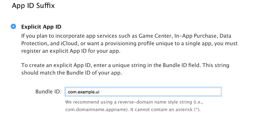 "appID": "<YOUR_TEAM_ID_FROM_MEMBER_CENTER>.com.example.ul",