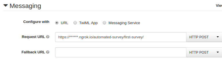 it towards your ngrok-exposed application /automated-survey/first-survey/ route. Set