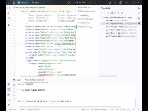 Show Phing and project info in console