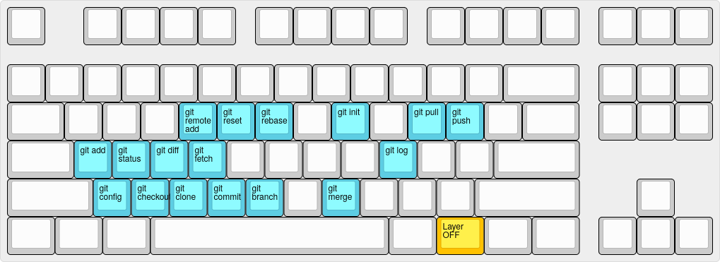 - Macro and Shortcut layers for at least the following: Git DONE, IntelliJ, VIM WIP, Yakuake, KDE, Firefox, Slack, Discord. All using default program configuration. [This list may and probably will get longer]