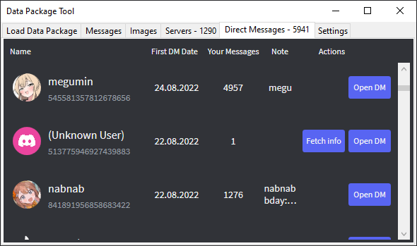 A tool focused on browsing the actual contents of a Discord data package.