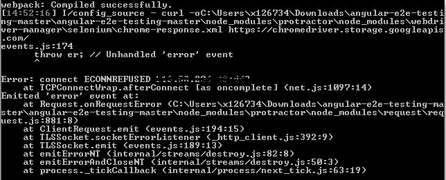 While i tried to execute the ng e2e command i'm facing the below issue.  How to resolve this issue.