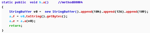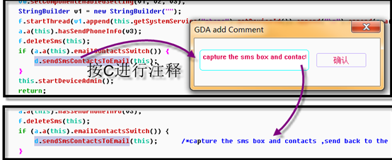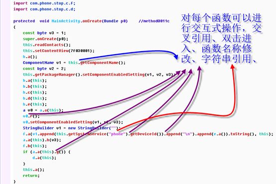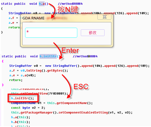 In order to efficiently analyze the entire APK, we need to identify the methods or classes that are identified, and GDA supports the modification of the method name and comments. double-clicking h.a();entering this method.
