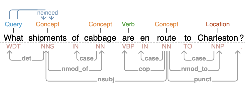 to include one or both of 'shipments' and '[lemma=be] en route to'; which would let us pick up the roles of shipment, origin and destination, if expressed.