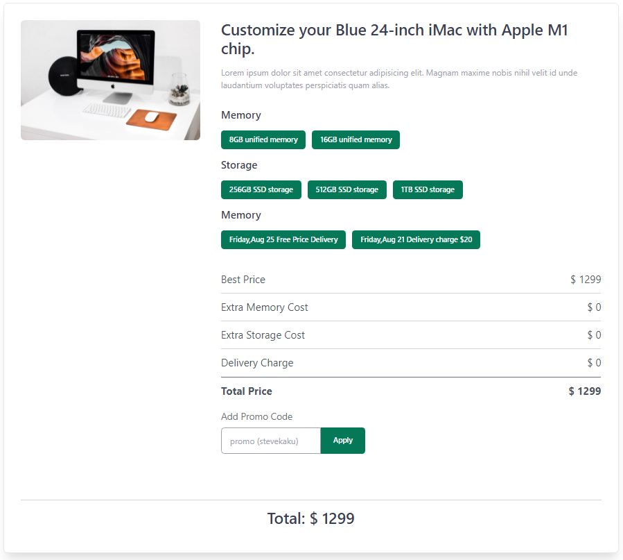 A simple application for macbook pro configuration with some validation using Vanilla JS.