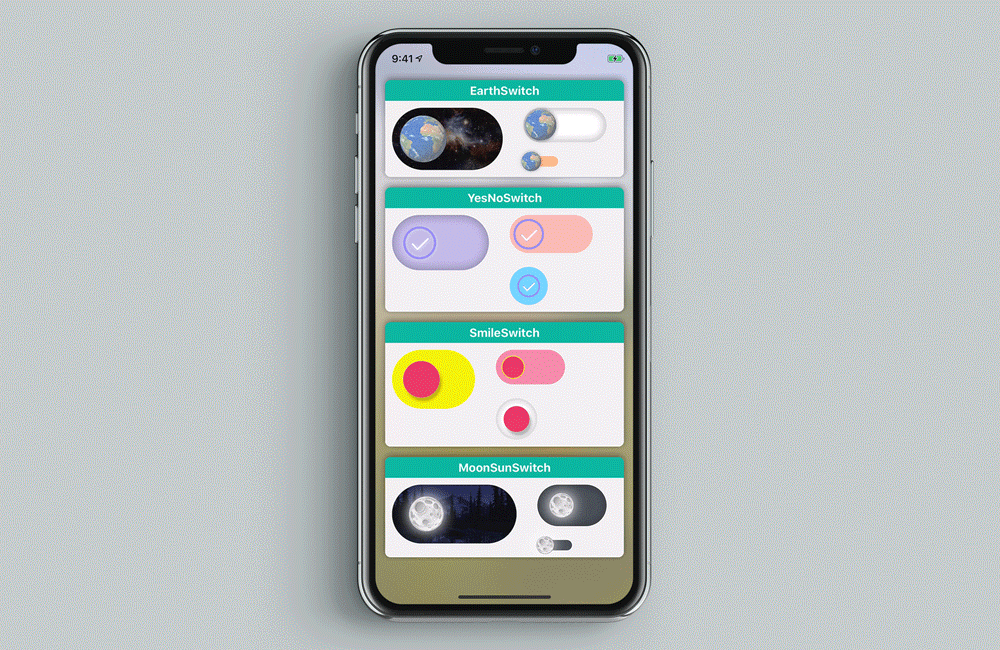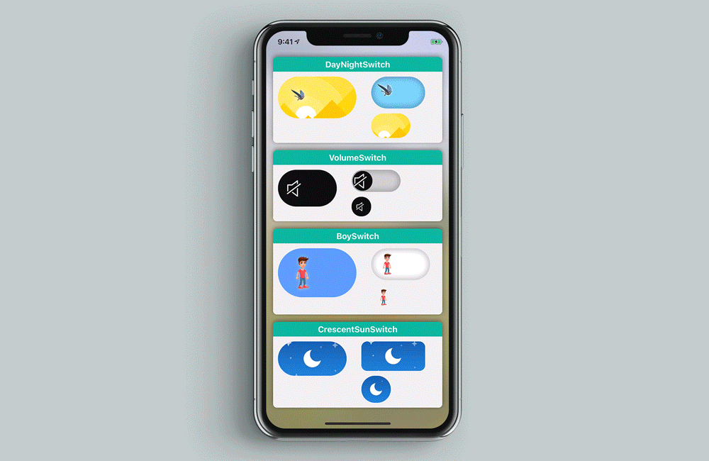 In addition to animation, you can create customizable switch with labels or images. All these elements can also be animated and decorated.