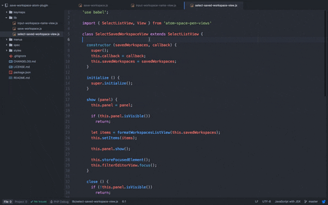 To debug plugin in Atom go to the plugin's folder ./save-workspace-atom-plugin and run command