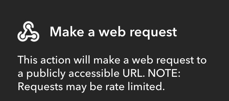 Choose your trigger (Google Home, SMS, etc). For the that you will need to choose the webhooks action: