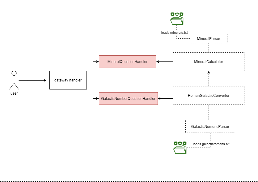 - GalacticNumberQuestionHandler, uses RomanGalacticConverter to get the actual number of the galactic numeric