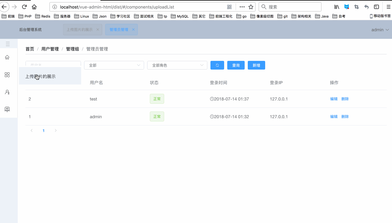 项目JAVA前端地址: https://github.com/lmxdawn/vue-admin-html-java