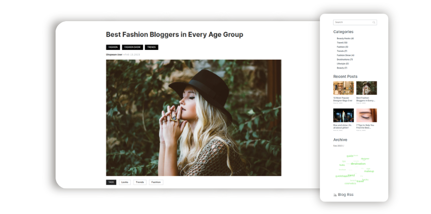 Make your blog not only engaging but easy to navigate so your customers can find the content they are interested in faster. Our Shopware Blog Extension is equipped with multiple widgets that contribute to that.