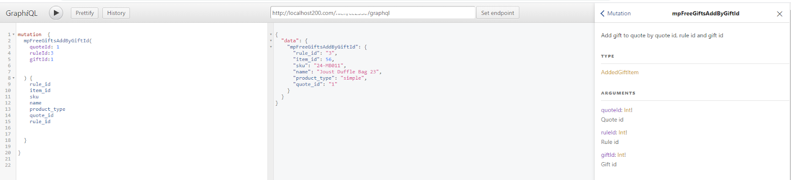 Currently, Mageplaza Free Gifts extension support the following queries and mutations: