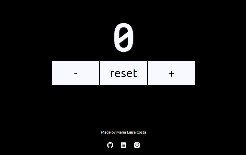 Um contador que contém três botões: aumentar, diminuir e resetar.