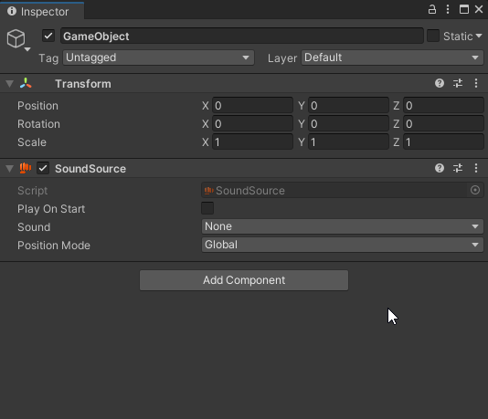 - Add SoundSource component to a game object