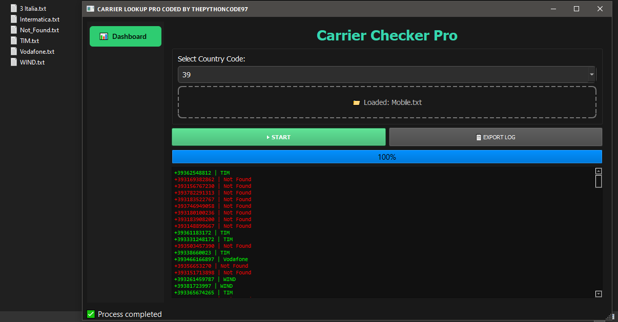 Global Phone Validation & Carrier Lookup tool for high-volume batch processing (206 Countries Supported).