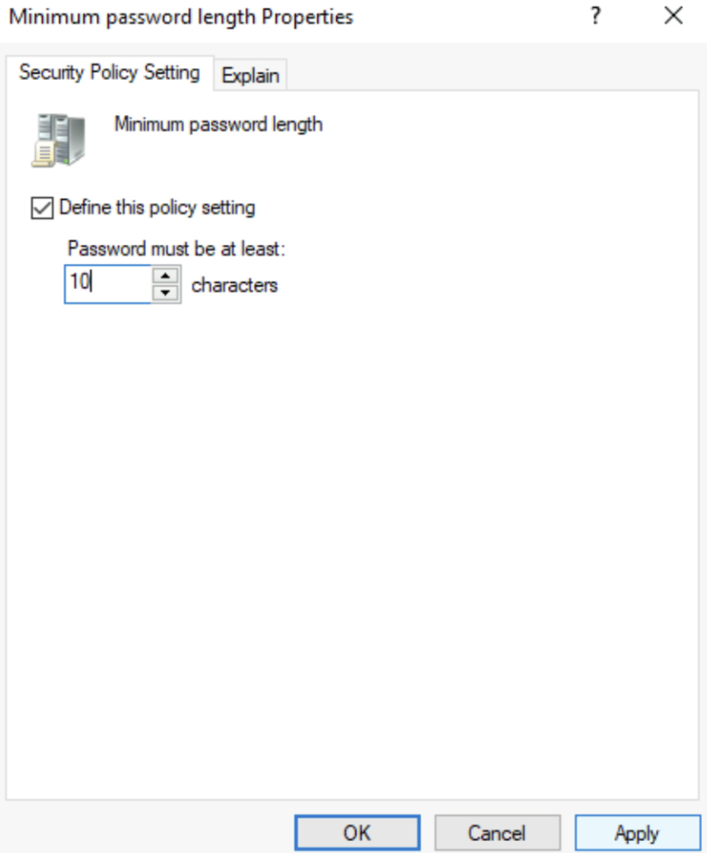Showing how to edit a poilicy example. In this example, we will be showing how one would go to edit the Minimum password length policy.