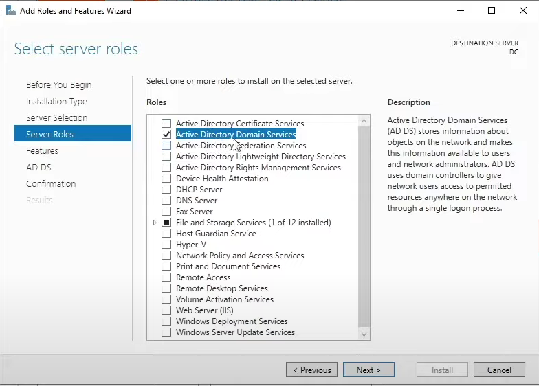 Install Windows Server 2019 on DC VM (Make sure to Select Desktop Experience), Identify the Internal (the one with no network access) & External NICs and assign IP address for internal Network Card.