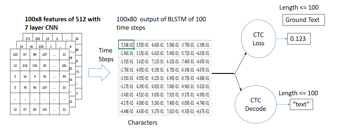 • Then CTC LOSS Alex Graves is used to train the RNN which eliminate the Alignment problem in Handwritten, since handwritten have different alignment of every writers. We just gave the what is written in the image (Ground Truth Text) and BLSTM output, then it calculates loss simply as -log("gtText"); aim to minimize negative maximum likelihood path.