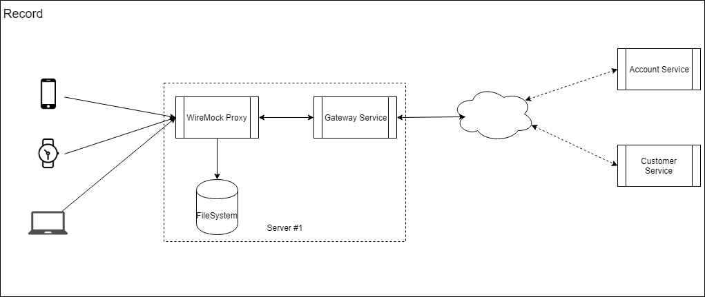 Service virtualization - demo application This is a reference application to demonstrate service virtualization (using "Record and Playback" feature of WireMock) Frameworks / Libraries used Spring Boot - for API providers implementation Spring Cloud Gateway - to be able to proxy multiple APIs WireMock Architecture Record Playback
