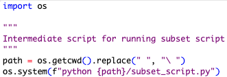 This short script will in turn run a command on your computer in order to properly run subset_script.py (which generates the subsets and write them to /Mosel/subsets.txt):