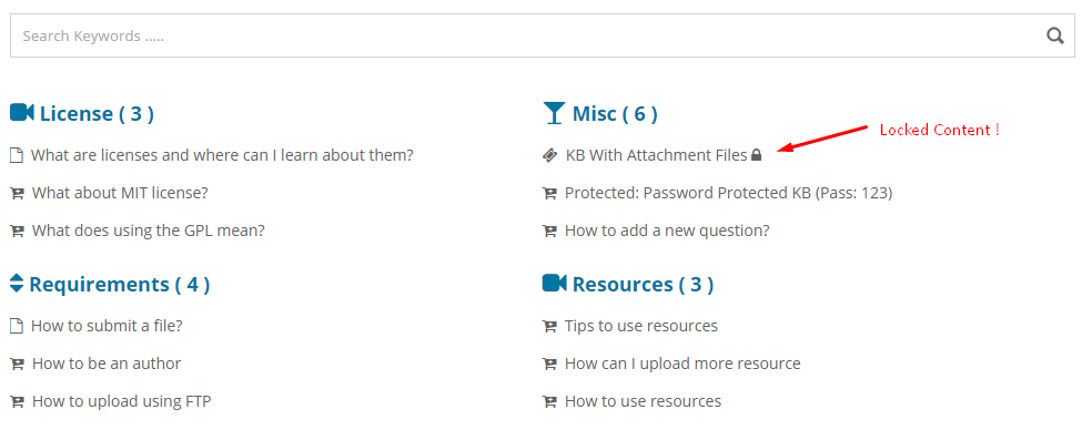 Addon provides you with premium and flexible settings. With just a few clicks, you can modify or control the access to your knowledge base contents. You can hide all restricted knowledge base contents from global users, or you can display them with a small lock icon with a title to notify them about restricted items.