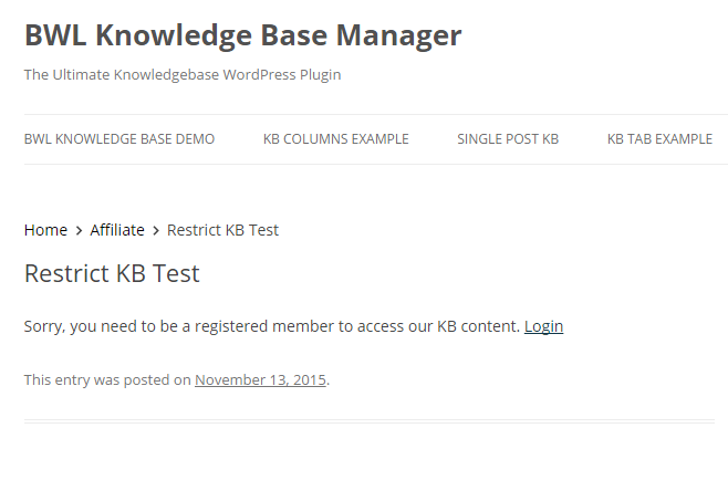 You can easily manage restriction from option panel. You can temporarily disable restriction for all Knowledge Base posts, display restricted posts with other KB posts, show/hide Lock Icon and set custom message for locked content. It's super easy to use.