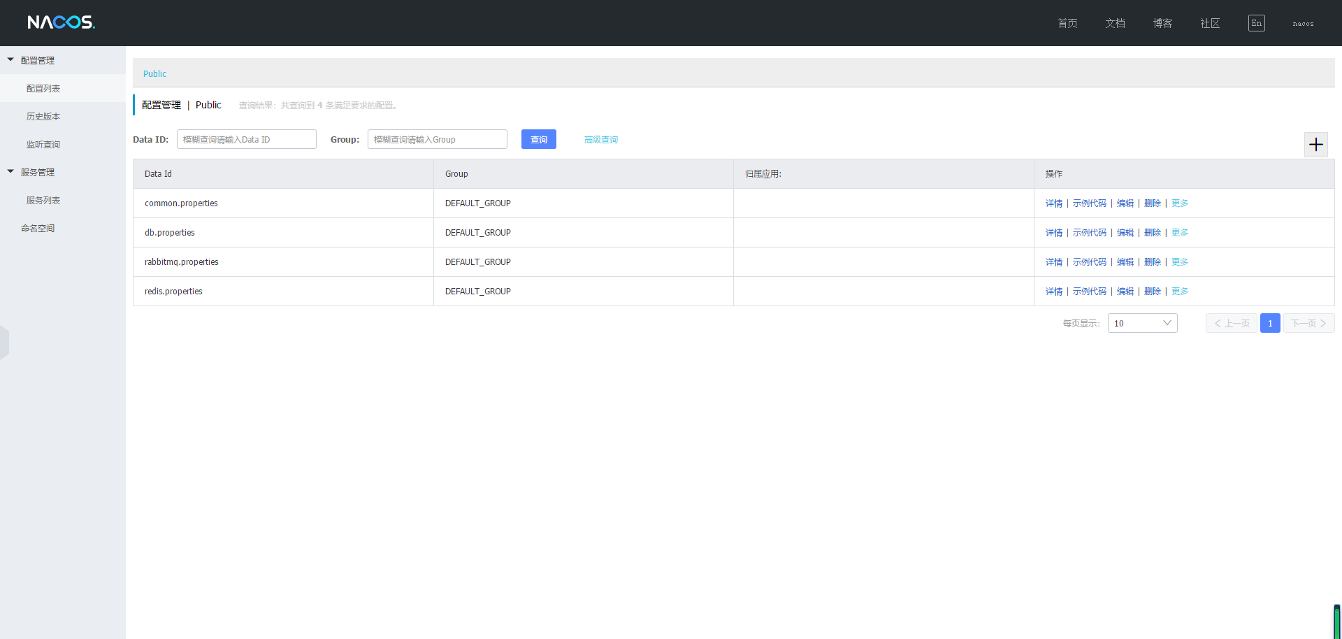 <!--Nacos配置中心地址--> <config.server-addr>127.0.0.1:8848</config.server-addr> <!--Nacos配置中心命名空间,用于支持多环境.这里必须使用ID,不能使用名称,默认为空--> <config.namespace></config.namespace> <!--Nacos服务发现地址--> <discovery.server-addr>127.0.0.1:8848</discovery.server-addr>